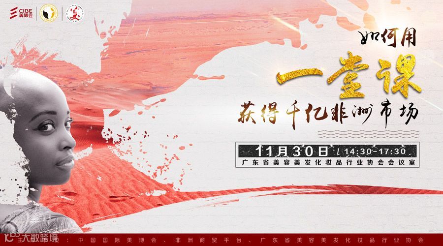 紧跟一带一路,拓展美业合作新趋势,由中国国际美博会、非洲商贸平台主办的《如何用一堂课获得千亿非洲市场?》非洲市场营销课程也即将拉开帷幕,针对非洲市场规划品牌,为中非美业拓展新的发展渠道。