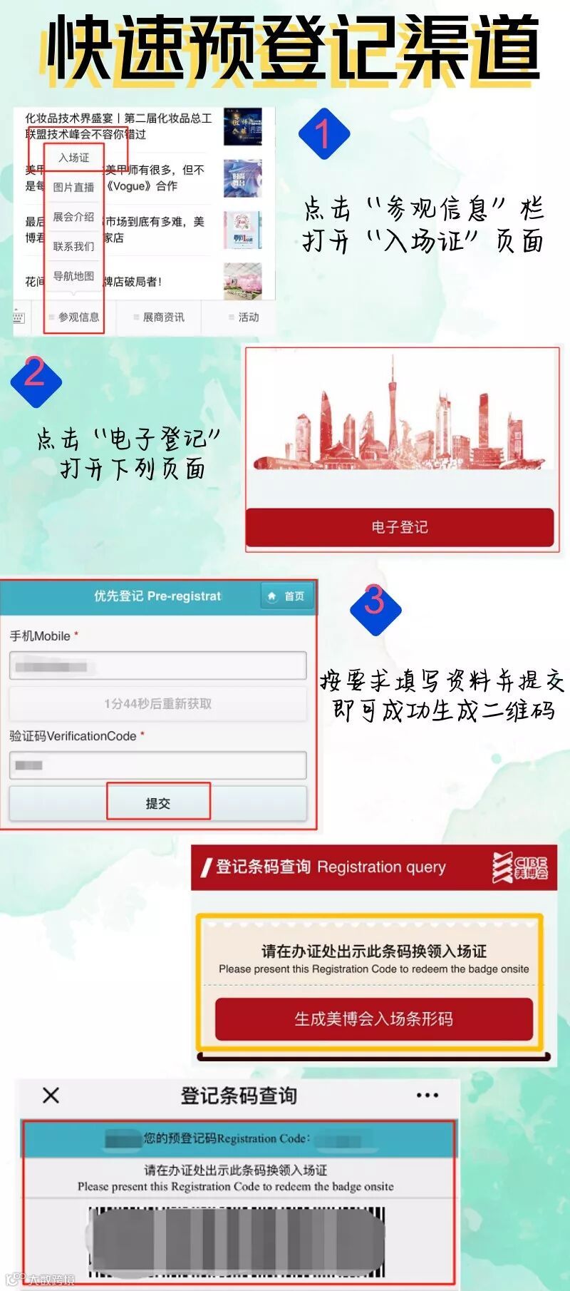 温馨提示:可先把条形码截图保存,到现场各办证点直接换取入场证(点击“参观信息”——“入场证”——“登记条码查询” )。