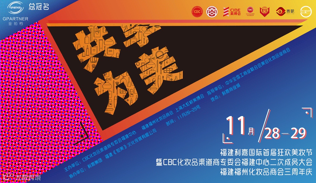 11月28~29日,“福建省利嘉国际首届狂欢美妆节暨CBC化妆品渠道商专委会福建中心二次成员大会·福建福州化妆品商会三周年庆”以“共享为美”为主题,由金拍档品牌总冠名,即将驶入榕城福州!