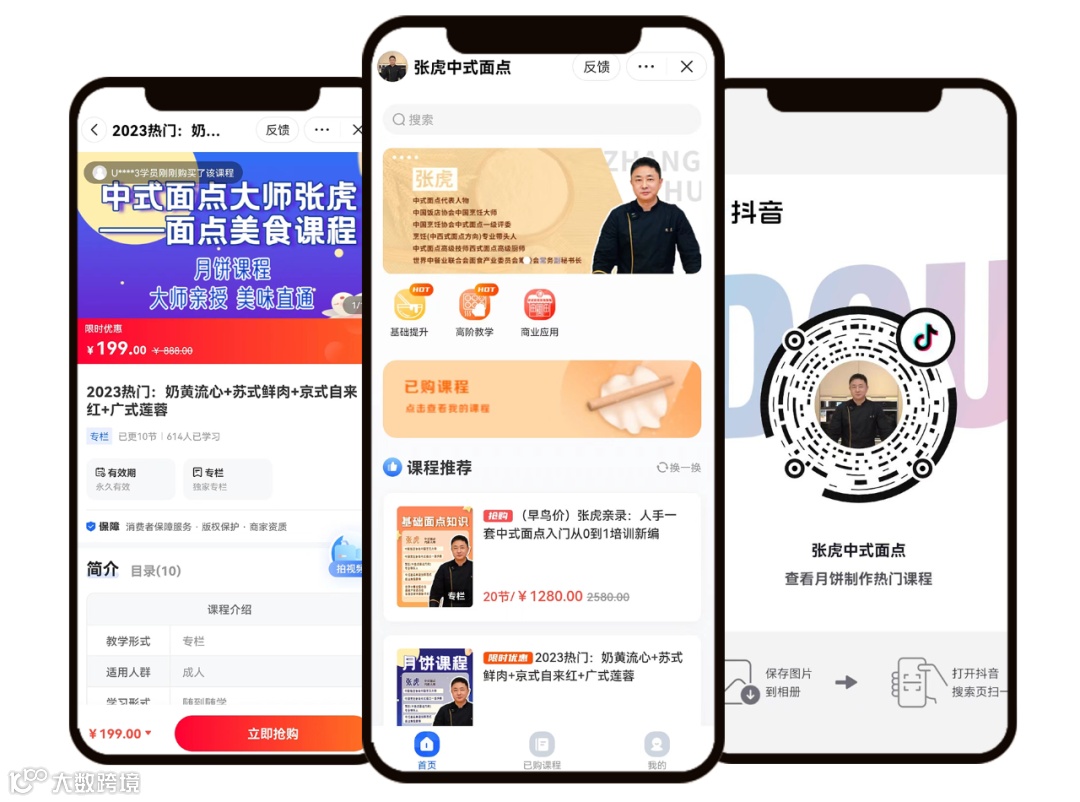 2022年8月,大师张虎极其团队与海豚知道合作,于抖音创建【张虎中式面点】知识付费小程序。