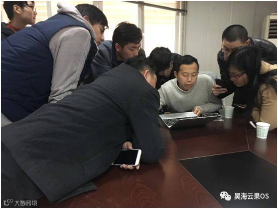 分享会结束后,所有参与者包围住使用云果OS系统之一的余总,让余总给大家演示产品使用情况。