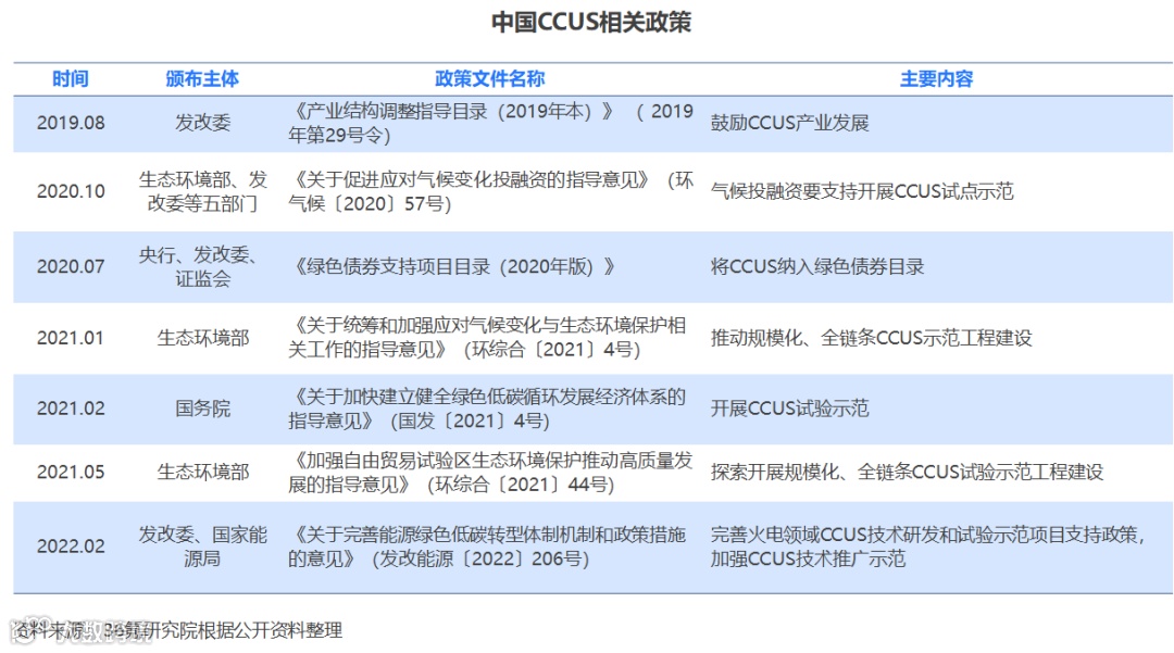 CCUS是目前实现大规模温室气体减排的重要技术手段。短期内,我国以石油、煤炭等化石能源为主的能源结构难以改变,发展CCUS可促进化石能源的高效利用,加快传统高排放行业的转型发展,对我国实现“双碳”战略目标具有重要意义。近年来,我国出台了一系列政策促进CCUS发展,具体内容包括推动CCUS示范工程建设、加强CCUS技术推广示范、将CCUS纳入绿色债券目录等。
