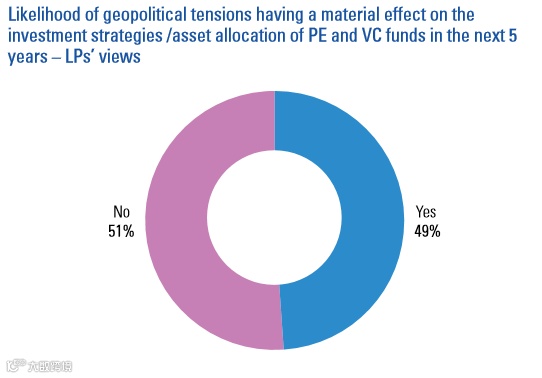 图:LP对于未来五年由于地缘政治局势紧张对PE和VC投资策略的影响的看法