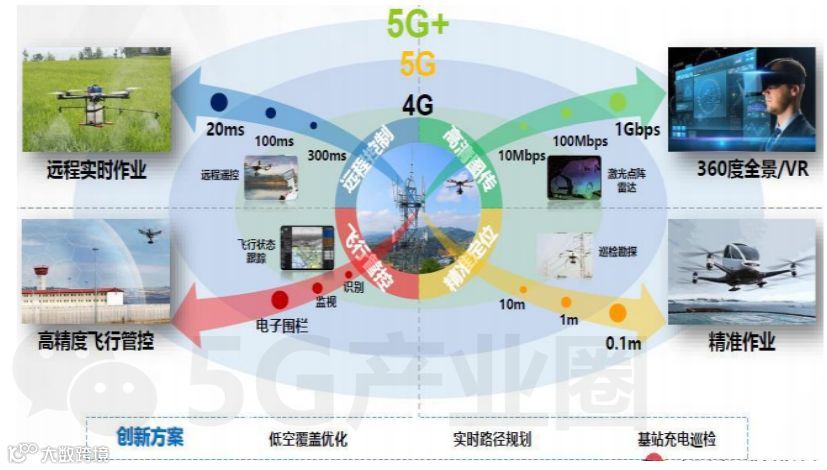 5G让更多应用场景的无人机接入低空移动通信网络成为可能,而接入低空移动通信网络的网联无人机,可以实现设备的监视和管理、航线的规范、效率的提升,促进空域的合理利用,从而极大延展无人机的应用领域,产生巨大经济价值。