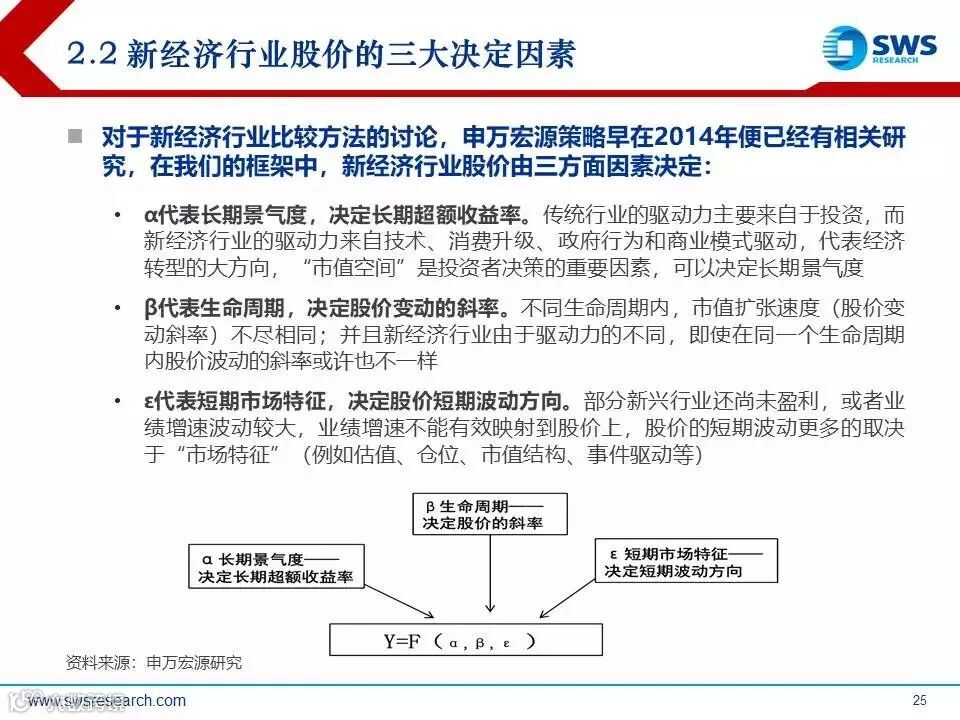 科创板的上市标准突破了企业盈利的限制,重点支持的6大领域(信息技术、高端装备、新材料、新能源、节能环保、医药)甚至允许亏损的公司上市,这对于传统的估值方法(收益法、成本法和市场法等)提岀了全新的挑战。申万宏源对新经济行业进行了系统的硏究,本文将在此基础之上对新经济行业的估值方法进行进一步的探讨: