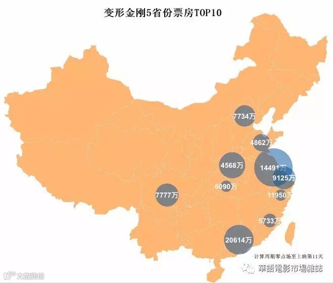 两部影片票房排名前十的省份除排名先后有变动外,地域上没有太大变化,但从第二名江苏省的总票房开始《变5》的表现已不如《变4》。《变5》的各地票房成绩普遍不及《变4》。
