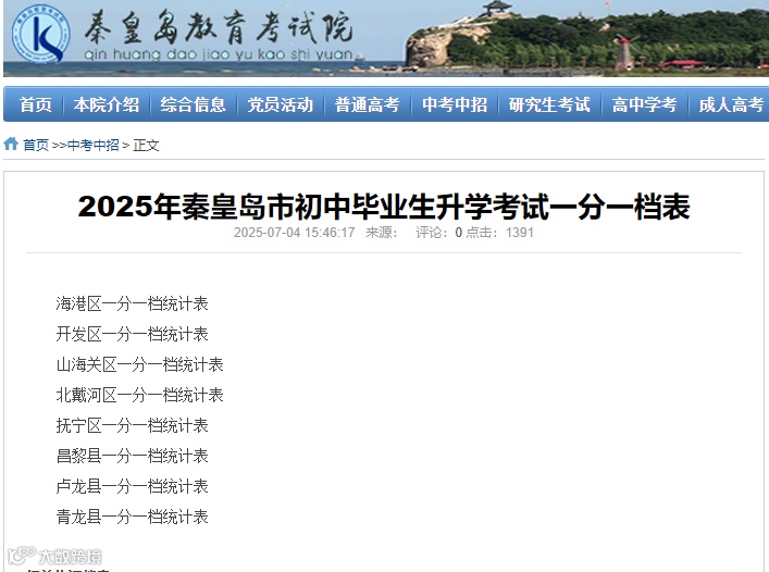 据秦皇岛市教育考试院最新消息