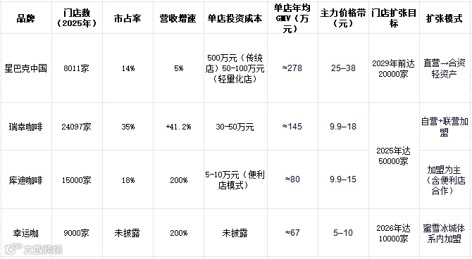 星巴克联手博裕玩起“高端品牌+大众打法”——既要调性,也要地盘;瑞幸则继续“精准插旗”,学校、地铁口见缝插针;库迪豪言2025年冲5万家店,幸运咖也瞄准2026年破万门店。