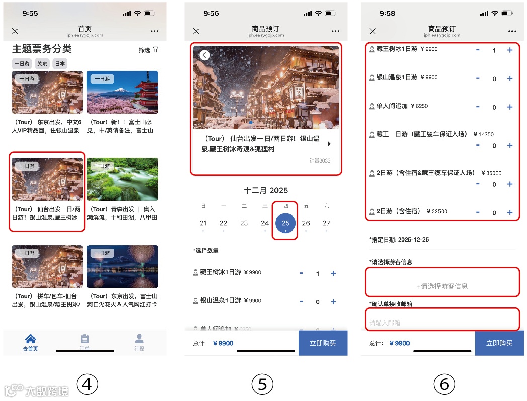④ 选择点击【 仙台出发一日/两日游!・・・】
