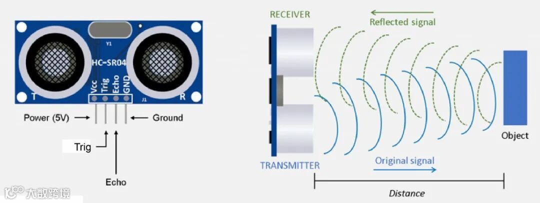 ECHO:回响信号输出引脚。模块测距完成后,此引脚会输出一个高电平,高电平的持续时间就是超声波从发射到返回的时间。