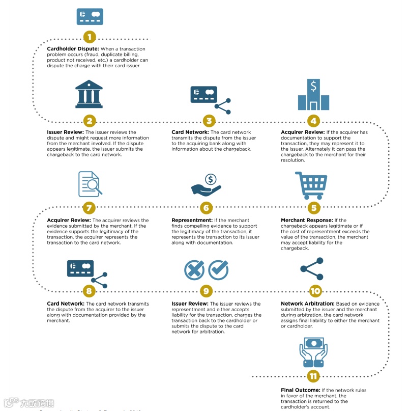 如果银行决定支持商家,而客户仍想争取退单,则客户可以选择寻求仲裁。这会将问题交给卡组织,如 Visa、American Express、Mastercard,它们在退单纠纷中拥有最终决定权。
