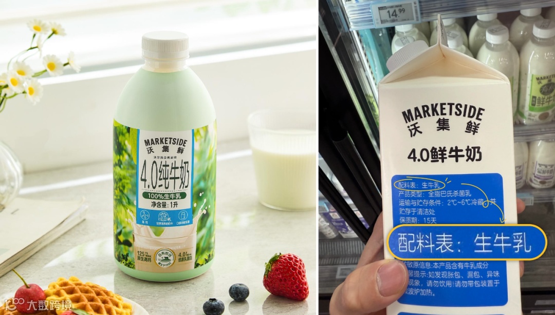 而对于沃集鲜的明星商品 4.0 纯牛奶来说,这款产品之所以能在沃集鲜必买榜单中长期位居前列,除了严格执行品质控制和高温灭菌工艺,更是因为从源头上选择以甘蔗叶喂养的奶牛,使得奶香自然香甜,风味更浓郁。沃集鲜在优质原料选用和极简配料处理上的坚持,其实正是致力于把「简单」变成消费者的真实体验,一种可以直接被识别和认证的产品竞争力。