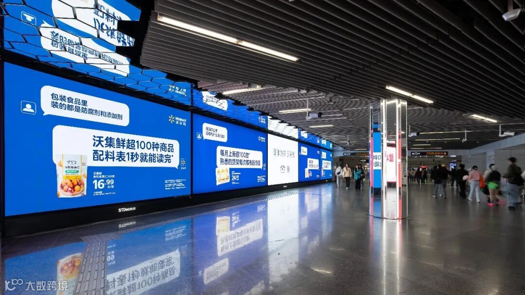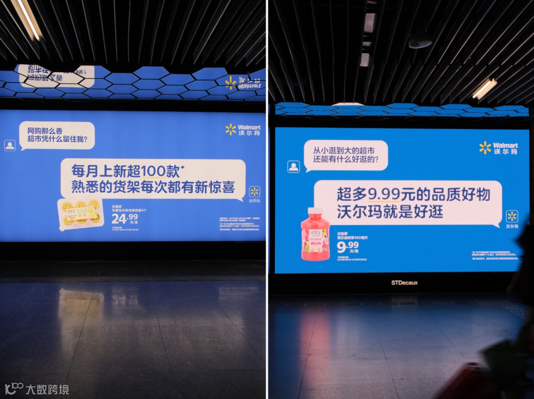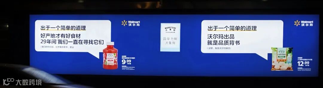 为了让消费者真正近距离「看到」这种态度,沃尔玛此次选择了人流量聚集的地铁站和户外大屏作为首次对外沟通的主阵地,迅速扩大认知。沃集鲜哪里好,有哪些好产品,为何值得拥有,所有优势像品牌宣言一样简单直接露出,一目了然: