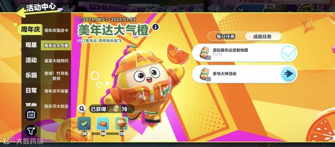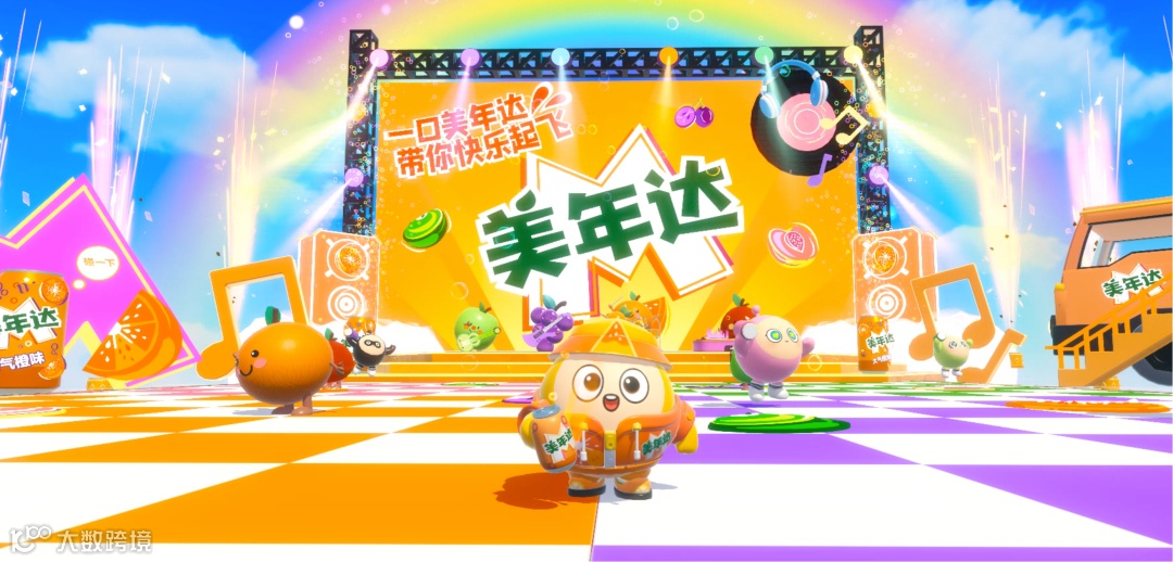 最后,美年达更是通过此番合作,以游戏为媒介完成了一次「沉浸式」的联名。当「情绪价值」被作为显学,品牌也开始进入以情绪共鸣、价值认同为核心的高段位叙事比拼。而在游戏中,玩家间纯粹、欢乐的社交氛围得到了最充分的体现。因此,美年达在游戏中搭建起巨型游乐场,为玩家,同时也是消费者提供代理满足,精准切中了他们的情感共鸣。
