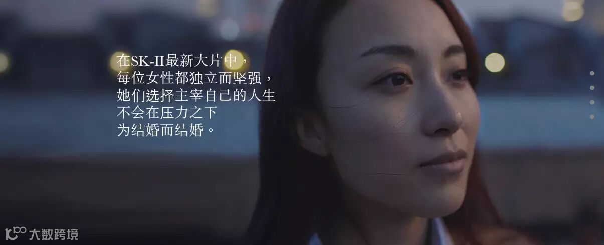 4 月宝洁旗下 SK-II 延续品牌从 2015 年年底开始的全球性的营销活动 #改写命运(ChangeDestiny)# 推出「她最后去了相亲角」广告,推崇女性应该有自主选择生活的权利。婚并不代表女性价值得到了实现。坚持单身或暂时单身也都无法实现女性真正的独立与幸福。自始至终,女性的幸福与伟大,独立于自信,快乐与骄傲,都不该用婚姻去定义。