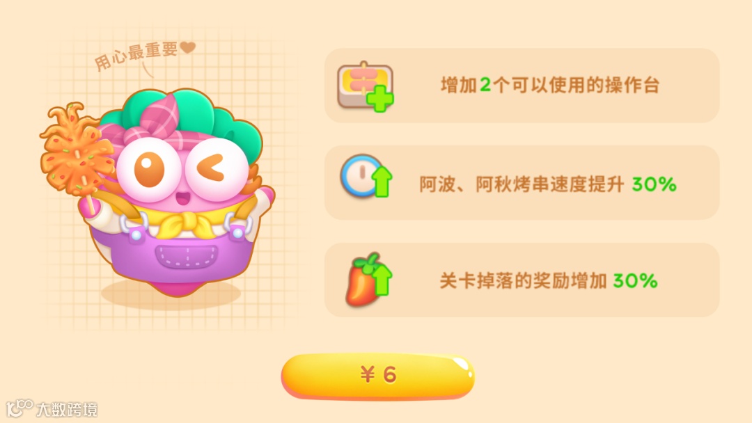 男女搭配,干活不累!邀请阿秋共同制作,关卡掉落辣椒概率增加、操作台增多、烤串速度提升,这样制作小吃更快哟~要旺一起旺,要胖一起胖!