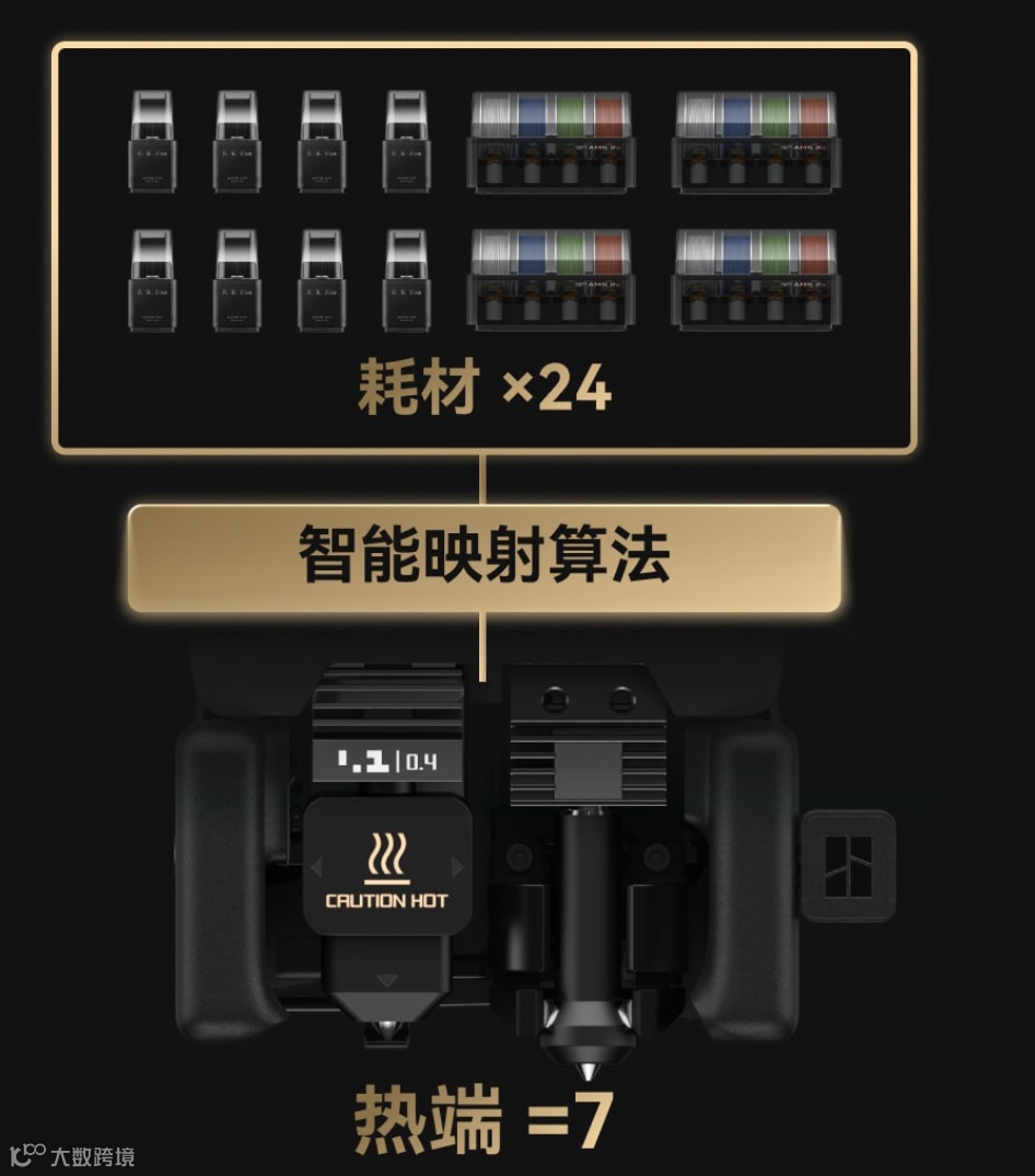 其智能算法可优化耗材与热端的分配,在减少冲刷废料的同时,也可实现出色的多色多材料打印效果。