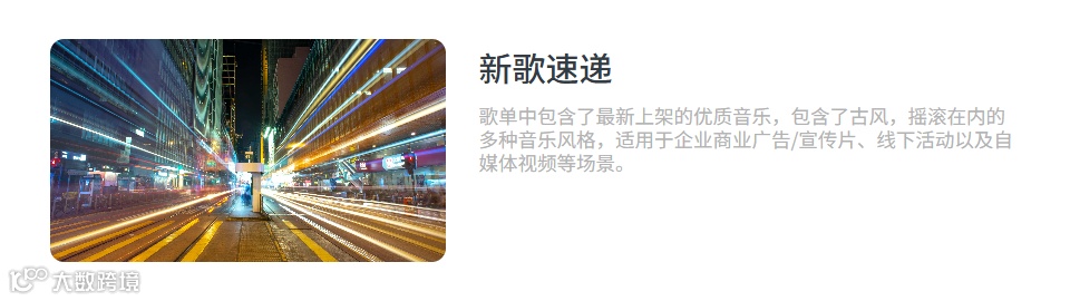 中国鼓与琵琶奏响江湖侠气,国潮喜庆旋律点亮节日活动,交响弦乐交织出史诗氛围。还有更多小清新民谣、热情爵士、悬疑氛围乐等等风格,全方位满足广告宣传、自媒体、线下活动等配乐需求!