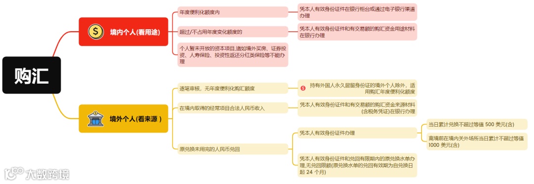 从业务交易类型来看,具体包括购汇、结汇、外汇收支,以及外币现钞等四个方面,以下为要点总结: