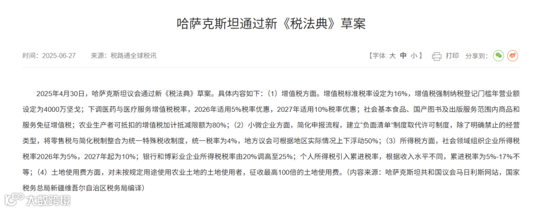 福利时间:现在私信“哈国合规”,免费领取《中国企业投资哈萨克斯坦的税务筹划》,包含各行业税率、怎么选核实等适用指南。