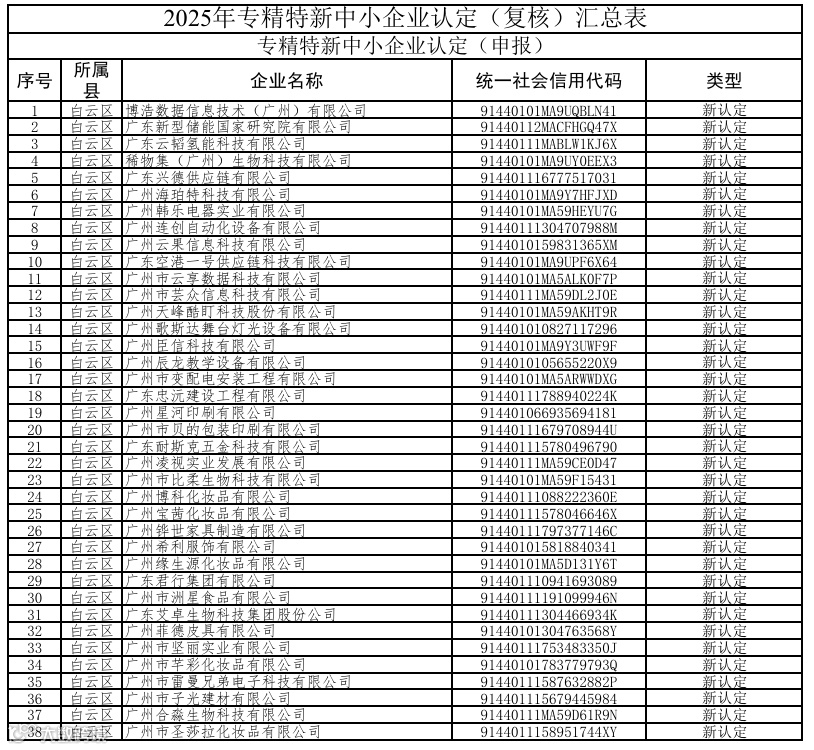 公示名单 | 广州市2025年专精特新中小企业(共2617家)