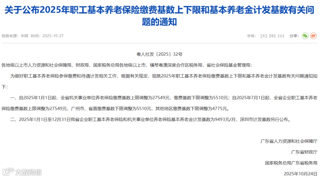 近日,广东省三部门联合发布通知(粤人社发〔2025〕32号),明确2025年深圳企业职工养老保险缴费基数自7月1日起调整,直接影响企业用工成本与个人社保缴纳。