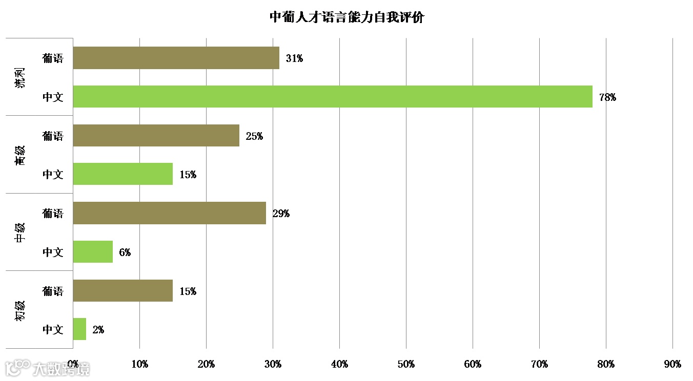 由于调查面向中文母语者,参与者的中文水平普遍较高。葡语能力则呈现分化:31%达到流利水平,44%处于初级或中级阶段。整体来看,提升葡语应用能力仍是多数人才的迫切需求。