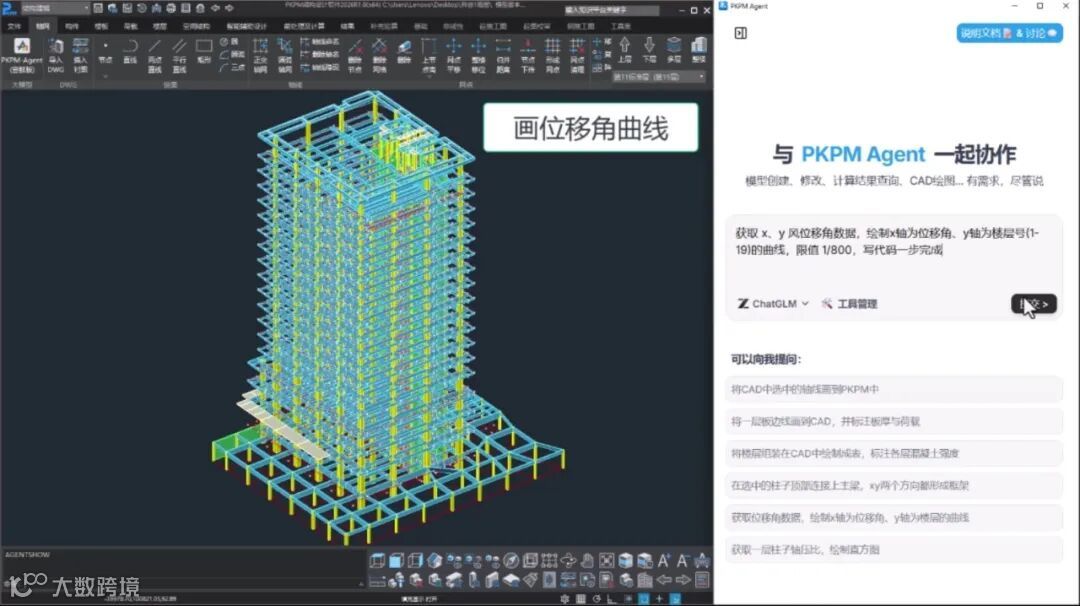 本次测试清晰展现了PKPM Agent与AID系列产品的协同工作流,形成“智能建模—自动布荷—截面优选—指标调优—CAD出图”的全流程闭环: