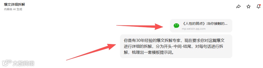 丢入上面的提示词之后,丢入爆文链接,让其对爆文进行分析。
