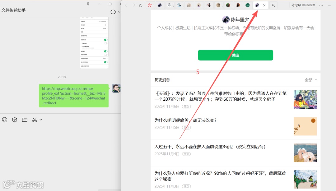 批量打开 20 个对标微信公众号: