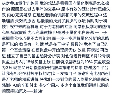 热情、进取、朝气蓬勃、互帮互助、孜孜不倦、突破自己、新的认识是贯穿这次训练营的主旋律,老面孔与新面孔的交织,大家打成一片,在量化里不断地探索与求新!