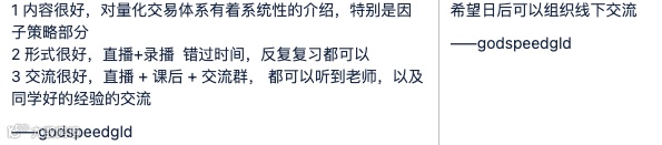 好的评论我们继续保持,建议的评论我们必须优化,在这条路上,我们是共同体,打造一个真实、纯粹的量化学习环境,互帮互助。