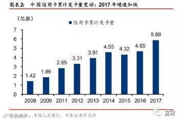 随着互联网金融的深入发展,信用卡市场也迎来了爆发期。2017年中国信用卡累计发卡量同比增长26.5%,为近年来的最高增速,同比增速超过借记卡。