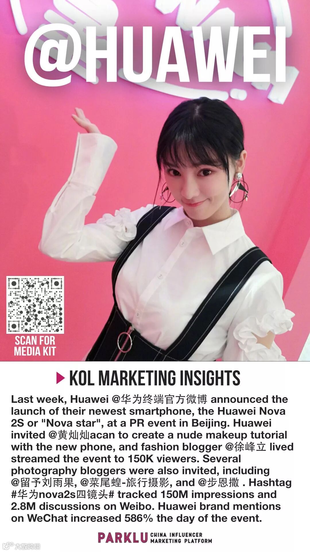 While they haven’t invested nearly as much in influencer marketing as OPPO and Meitu have, Huawei recently collaborated with a number of influencers and celebrities for the launch of their newest smartphone, the Huawei Nova 2S.