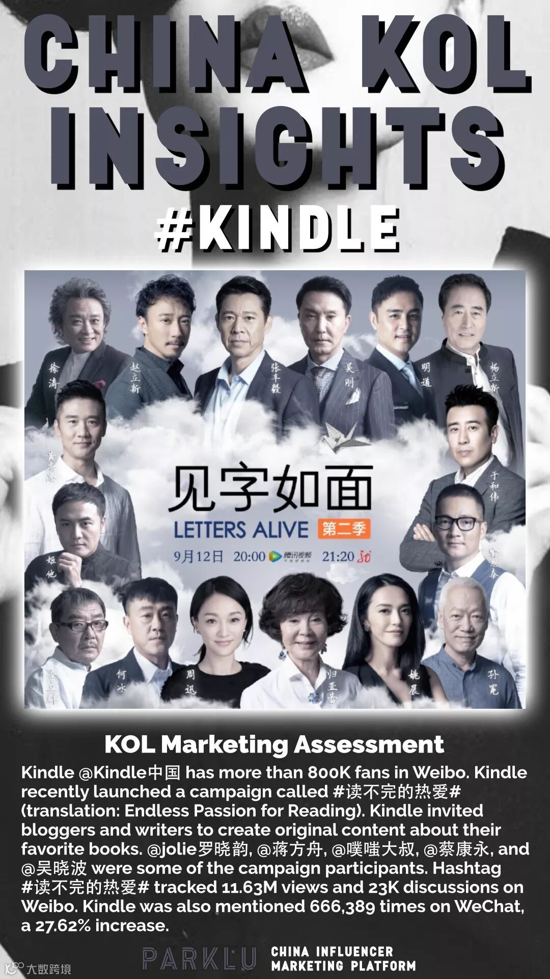 To reach this audience, Kindle invited industry influencers and famous writers to create original content about their favorite books. @jolie罗晓韵, @蒋方舟, @噗嗤大叔, @蔡康永, and @吴晓波 were some of the campaign participants. Hashtag #读不完的热爱# tracked 11.63M views and 23K discussions on Weibo. Kindle was also mentioned 666,389 times on WeChat, a 27.62% increase.