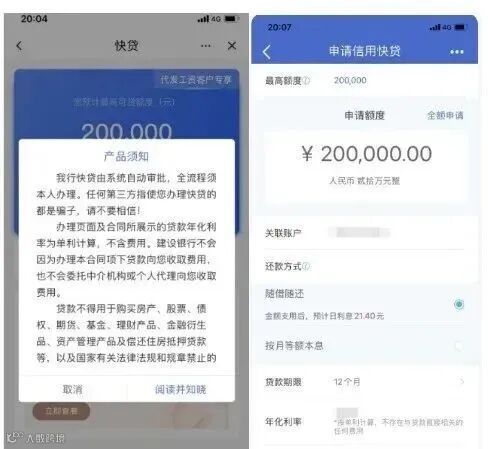 有可能提示“您在建行网银预留的身份证号是15位,暂时申请不了快贷”,可以直接前往柜台注销现有网银,使用新的18位身份证重新签约网银。