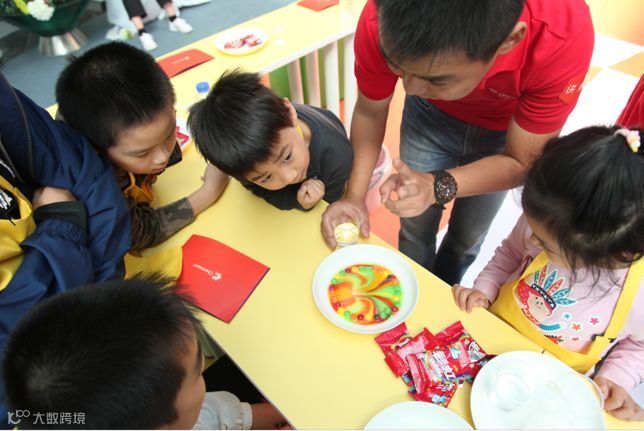 将色彩斑斓的彩虹糖作为实验道具,通过观察彩虹糖在水中溶解形成“彩虹桥”的过程,同学们跟着导师学习了密度与极性分子的科学知识点。