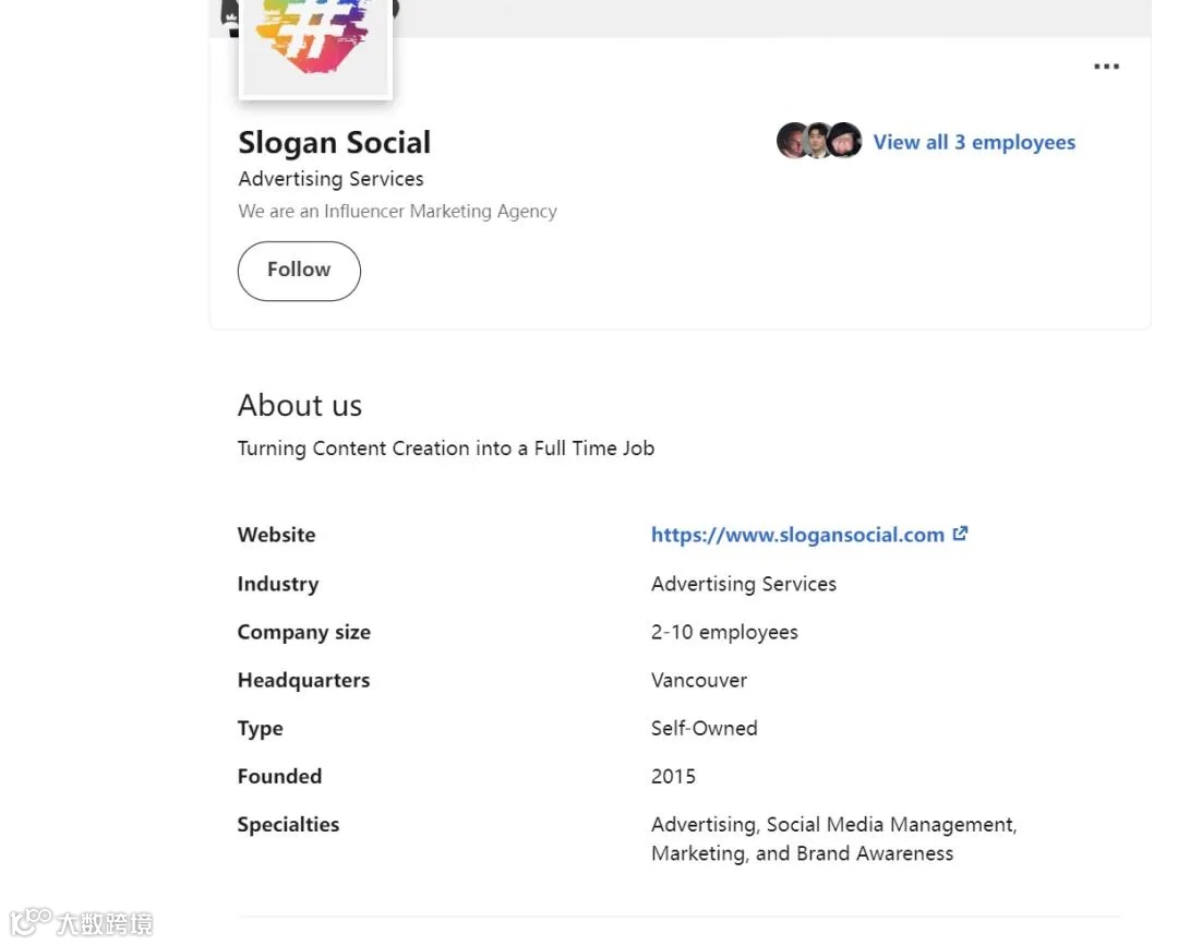 Slogan Social的官网显示,这是一家位于加拿大温哥华的Influncer Marketing(网红市场营销)公司,核心业务为品牌营销策划和网红商务对接。