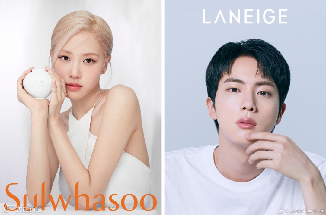 为贴近北美消费者,Whoo后、雪花秀等高端品牌自2023年起在包装上去除中文,采用韩文或全英文设计,品牌宣传视频亦使用英语。代言人方面,倾向兼具本土文化与全球影响力的明星。如雪花秀启用BLACKPINK成员ROSÉ朴彩英,兰芝选择BTS成员JIN金硕珍,借助偶像效应提升品牌全球认知度。