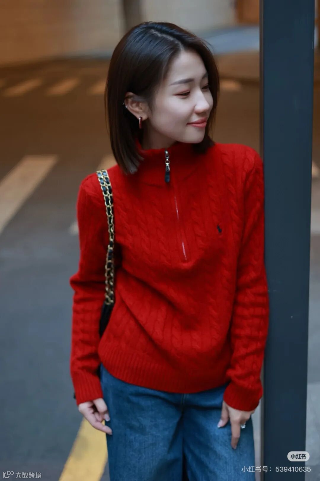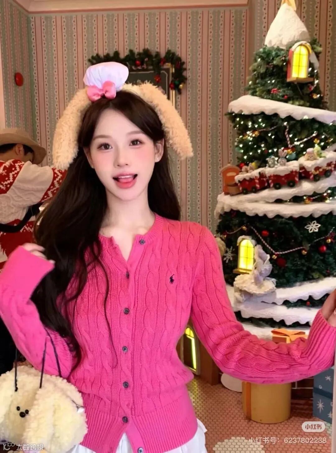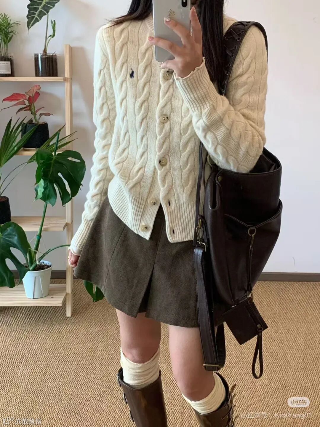 复古麻花绞花造型,立体筋骨感强;胸前撞色小logo点缀,兼具老钱风与温柔质感。