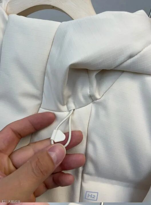 外部防泼水面料,连帽不可拆卸(内里亦为羽绒填充),门襟采用拉链+暗扣+磁扣三合一设计。