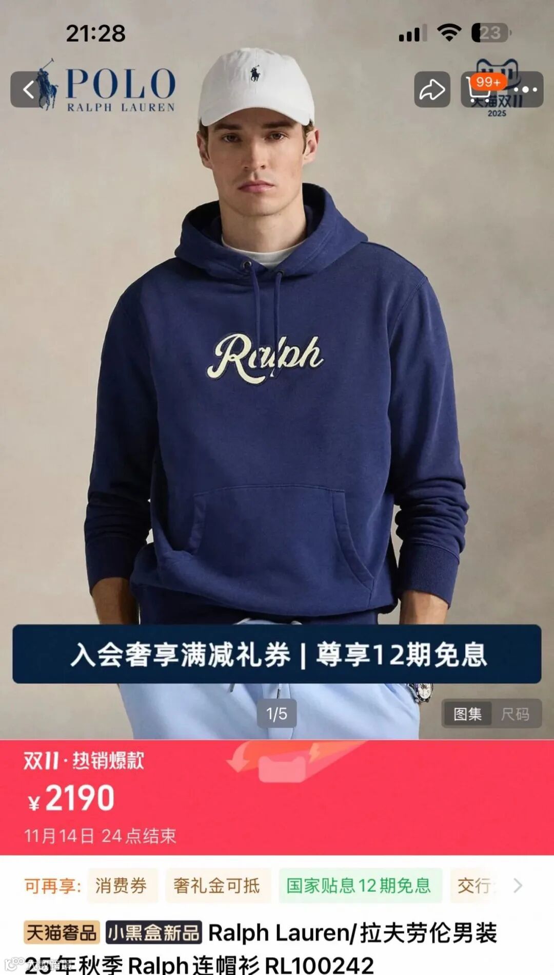 NO.7 R*L加绒男女情侣圆领/连帽刺绣卫衣