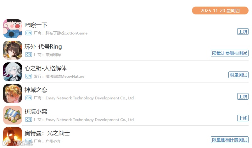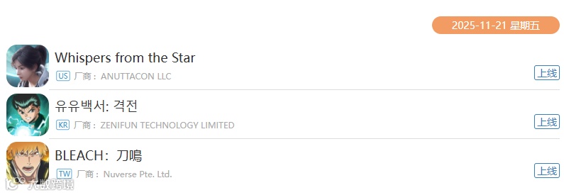 2025年11月17日-11月21日游戏开测清单 | 共计329款!