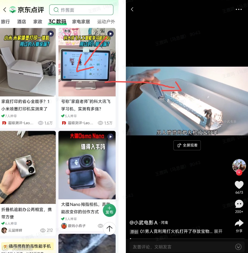 也就是说京东点评的内容,至少内流,接的是现有的京东所谓的视频推荐流逻辑,而且还是用热门推荐,甚至没分品类和关注用户进入路径……