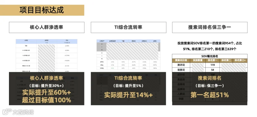 在人群资产方面,核心人群渗透率超过目标值100%;TI综合流转率目标为提升至5%,实际提升至14%+。