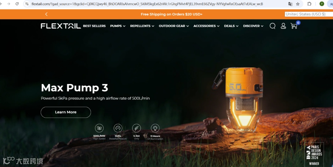 在此背景下,以FLEXTAIL为代表的创新品牌,凭借"克级重量+多性能"的颠覆性产品横扫全球。目前,FLEXTAIL品牌覆盖全球160多个国家或地区和地区,销售额破千万,融资超1亿元。