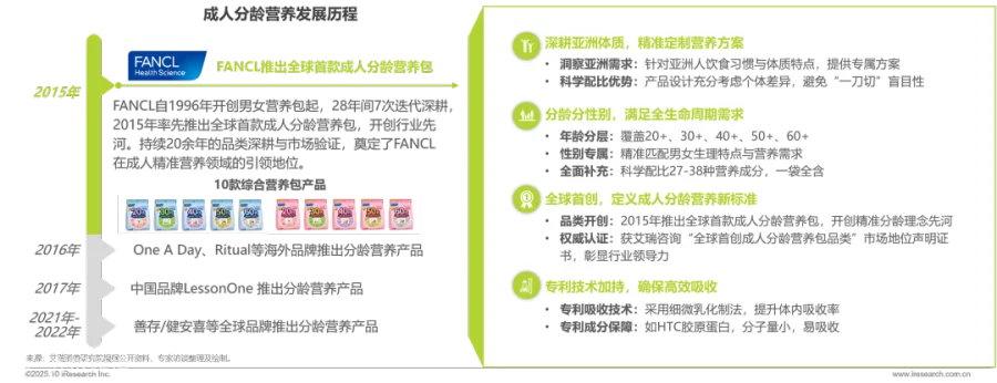 FANCL以亚洲体质为核心、践行精准分龄理念,开创成人分龄营养补充先河,众多营养保健品牌纷纷跟进