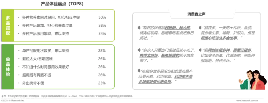 营养补充产品存在多产品冲突风险与单品使用不便双重痛点,倒逼行业向一体化便捷方案升级
