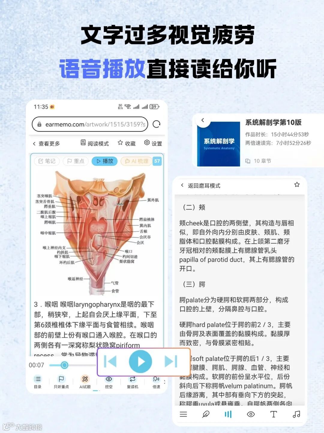 文字过多容易视觉疲劳,打开语音播放,就能听到朗朗读书声。