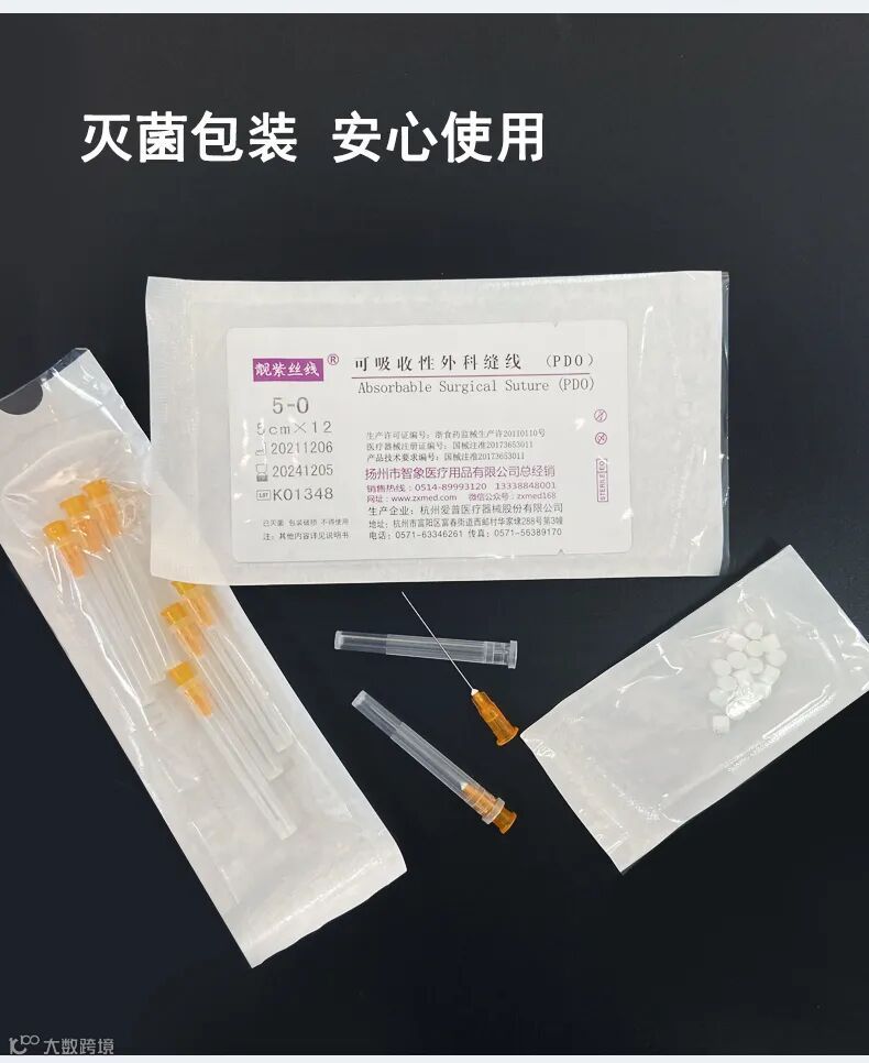 “针线一体” 自助穿线 5-0靓紫丝线PDO 赠5#埋线针12支 赠固定泡沫15粒 作用于身体部位的埋线